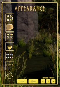 The first thing you will want to do is customise your appearance. Creating realistic looking 3D characters is difficult without requiring high end computers. I have done my best to give you enough options that you can create a unique looking character. Once you open the main menu by pressing the escape key, and clicking on the appearance icon, you will see the Appearance menu.